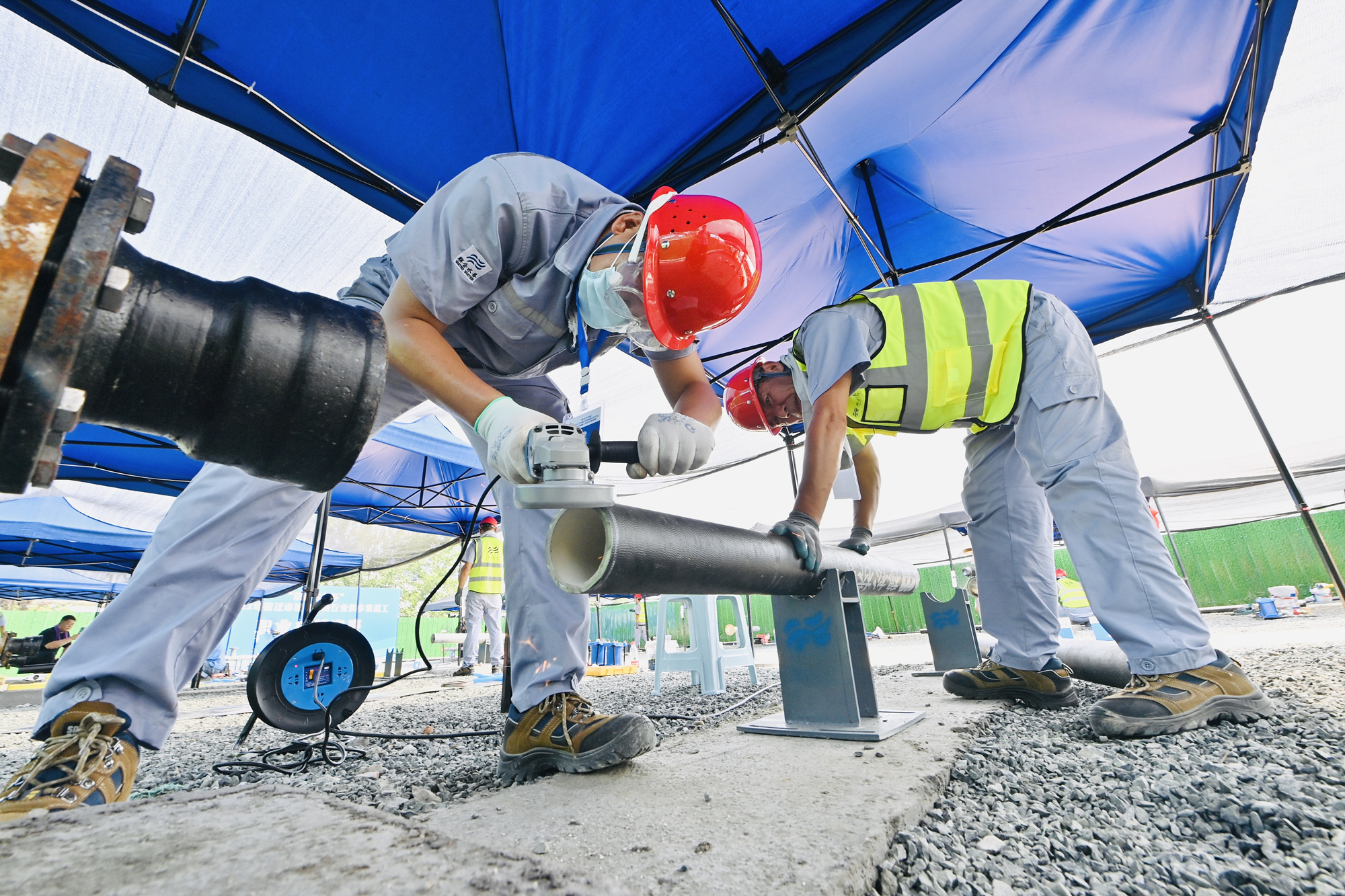 圖:選手現場打磨管道