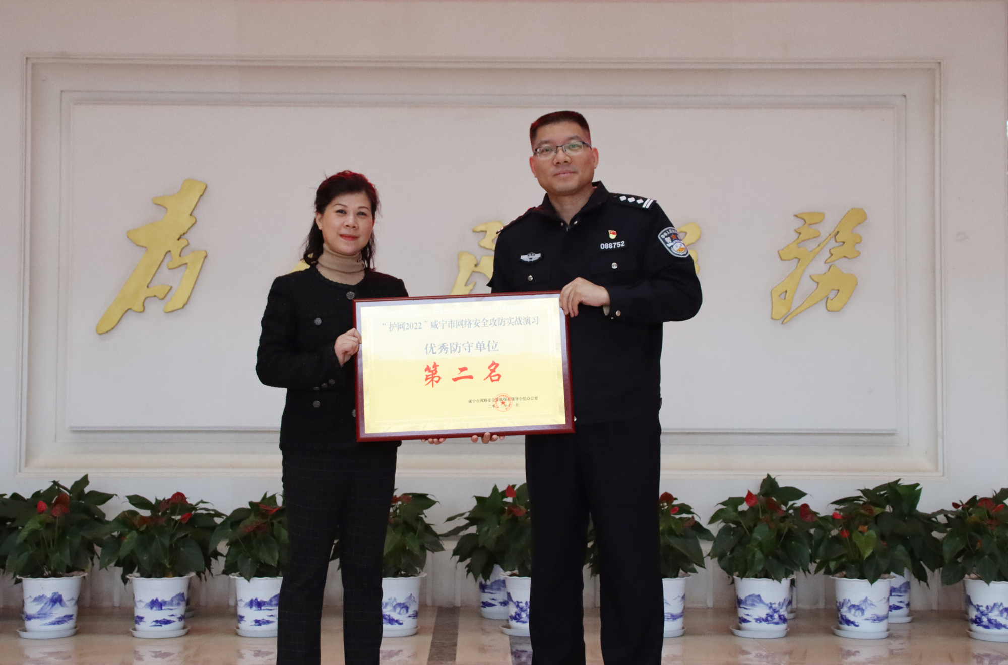 為深入貫徹黨的二十大精神和習近平總書記關于網絡強國的重要論述,近日,咸寧聯合水務有限公司順利完成了由咸寧市公安局組織開展的咸寧市第二屆“護網2022”網絡安全攻防演習專項活動,并取得第二名的好成績。11月21日,咸寧市公安局網絡安全保衛支隊副支隊長楊智勇為咸寧聯合水務頒發榮譽獎牌,聯合水務咸寧區域總經理陶瑛代表公司領獎。