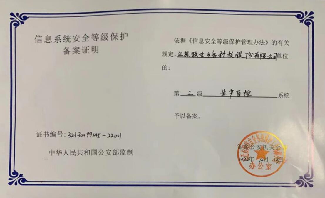 等級保護(hù)是我國信息安全基本國策,是落實監(jiān)管要求的重要舉措,江蘇聯(lián)合水務(wù)科技股份有限公司宿遷供水公司將會繼續(xù)做好信息網(wǎng)絡(luò)安全工作,嚴(yán)格落實國家相關(guān)網(wǎng)絡(luò)安全法規(guī)要求,提升網(wǎng)絡(luò)安全防護(hù)能力和水平,為全市供水提供堅實的安全保障。