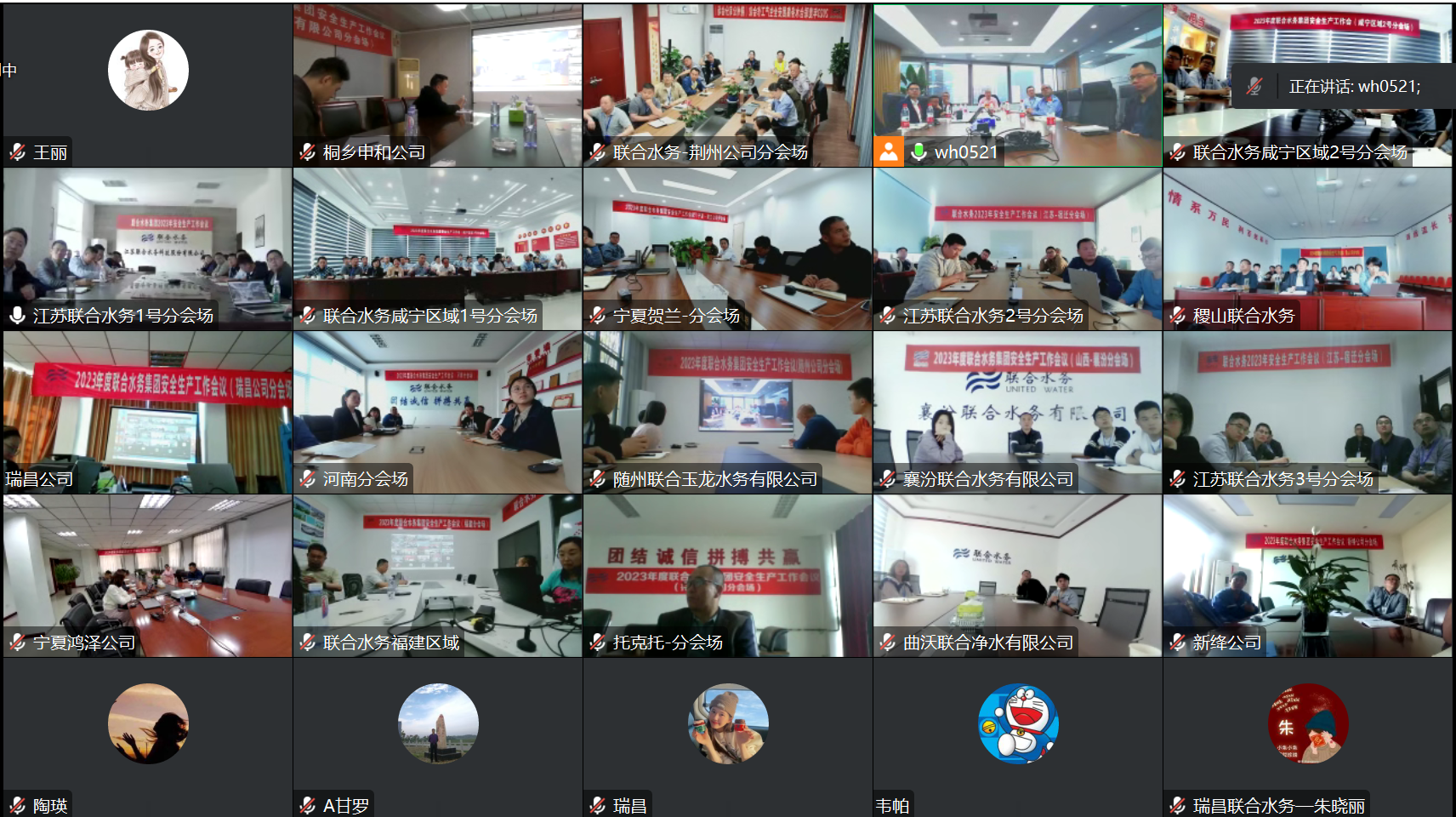 為壓緊壓實安全責任,落實落細防范措施,筑牢聯合水務安全生產根基,5月8日,聯合水務召開2023年度安全生產工作會議,會議以現場與視頻相結合的形式進行,設江蘇宿遷主會場和上海、浙江、湖北、河南、山西、寧夏、福建等分會場。聯合水務運營管理中心總經理王歡先生主持會議,公司安委會成員、各項目公司中層副職以上人員、各工程項目部負責人、專兼職安全員等參加。