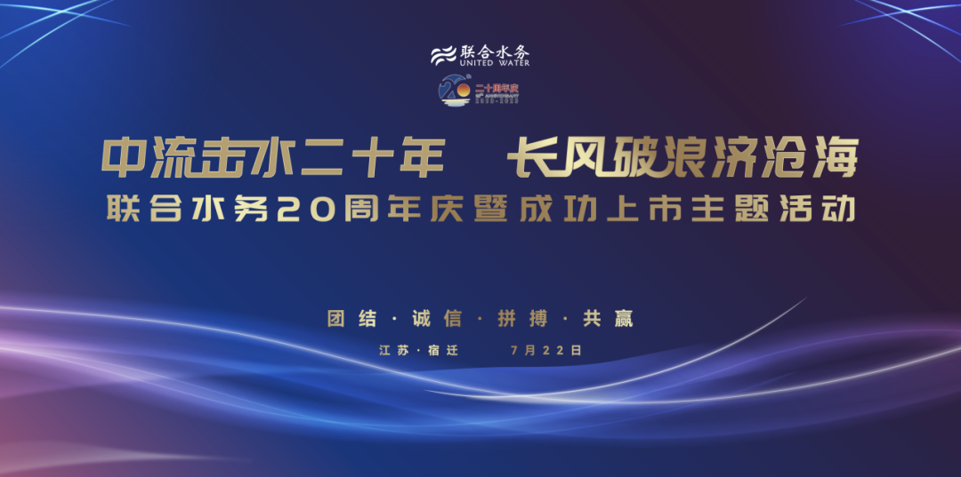 中流擊水二十年,長風破浪濟滄海,聯合水務20周年慶主題活動于7月22日在江蘇宿遷市隆重舉行。來自聯合水務上海總部和各運營公司的骨干管理人員、員工等齊聚一堂,共同見證聯合水務20周年華彩!慶典活動通過聯合水務官方微信視頻號同步直播,在線觀看次數超20000次,點贊次數超140000次。