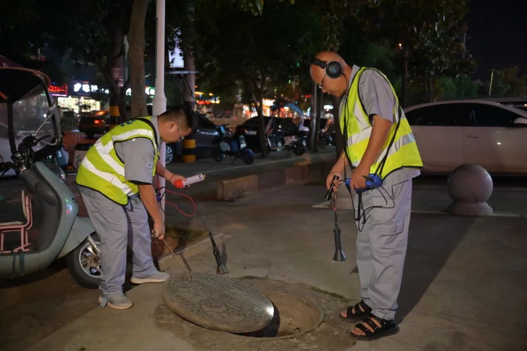 火“熱”奮戰(zhàn),加強(qiáng)管網(wǎng)巡查 為進(jìn)一步保障城區(qū)供水管網(wǎng)運(yùn)行安全,及時(shí)發(fā)現(xiàn)管道暗漏點(diǎn),咸寧聯(lián)合水務(wù)管網(wǎng)探漏人員在炎炎夏日,沿著城區(qū)大街小巷對供水管道進(jìn)行“體檢”。有時(shí),需要安靜、車流量小的環(huán)境,他們就選擇深夜出動,一手拿著聽音桿,一手拿著手電筒,利用儀器檢聽供水管網(wǎng)運(yùn)行情況,為能迅速判斷是否漏水以及精準(zhǔn)定位漏水點(diǎn),有時(shí)需要反復(fù)探測十幾次,力爭將各類管道漏水隱患扼殺在萌芽中。同時(shí),在供水高峰期,探漏人員還將常態(tài)化開展管網(wǎng)巡查,將責(zé)任層層落實(shí)到個(gè)人,力求件件有人管,項(xiàng)項(xiàng)有落實(shí),事事出成效,保障供水管網(wǎng)的運(yùn)行安全穩(wěn)定。