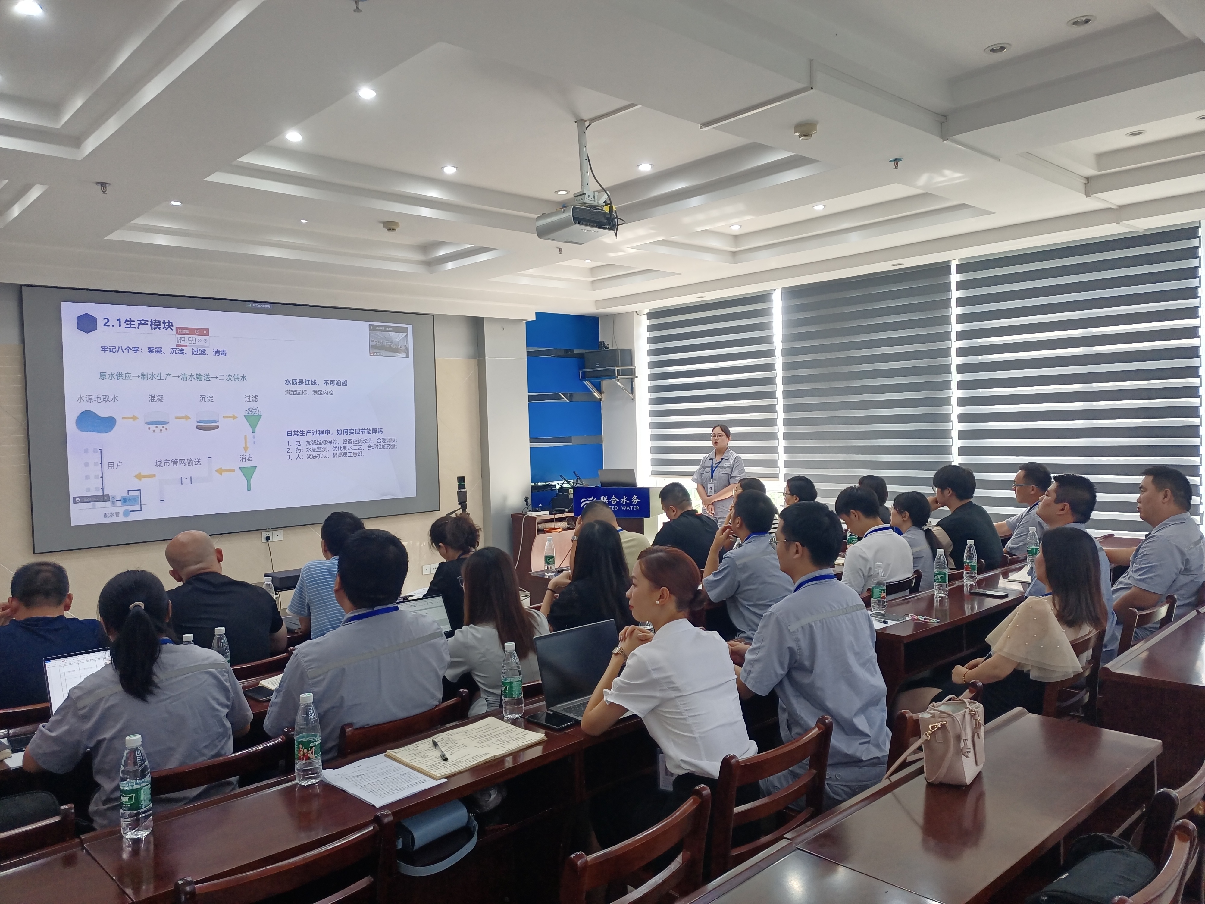 為了培養具有管理意識、管理能力和專業技術知識的復合型后備人才,7月31日,“2023年重點人才輪崗學習總結匯報”在咸寧聯合水務三樓會議室舉行。聯合水務咸寧區域總經理陶瑛、咸寧聯合水務有限公司總經理毛雄輝、咸寧市聯態生態環境科技有限公司總經理陳博、咸寧思源水務有限公司總經理席長林、咸寧聯合水務有限公司副總經理郁莉、湖北區域財務總監魏芬等領導及各部門負責人、參訓學員、咸寧區域管培生近30人參加了此次活動。
