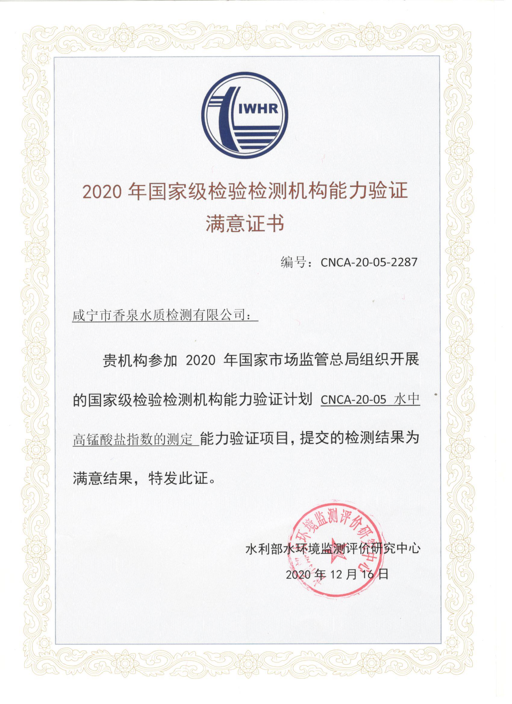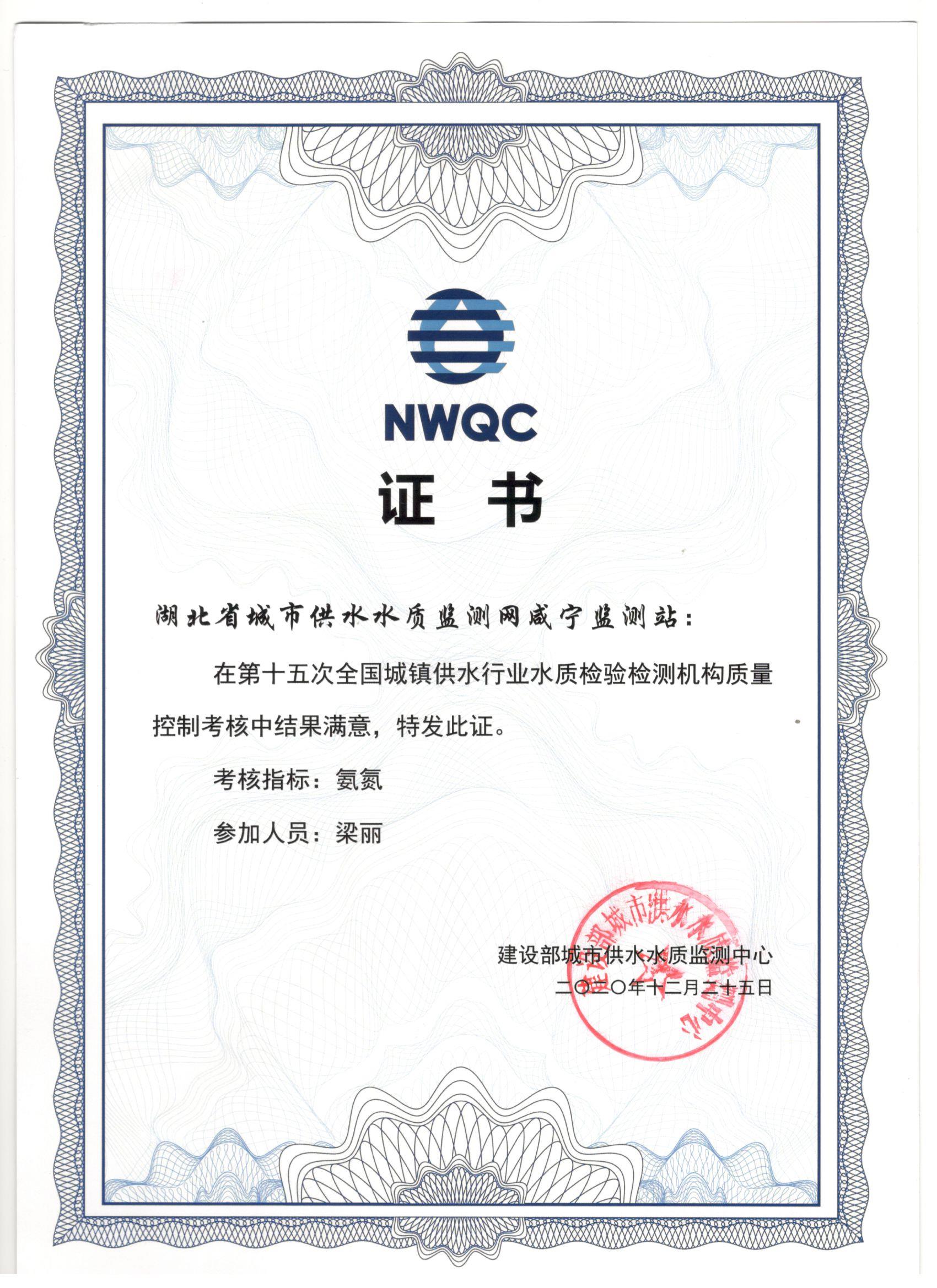 近日,聯合水務咸寧市香泉水質檢測有限公司暨湖北省城市供水水質監測網咸寧監測站傳來佳績,其參與的國家住建部城市供水水質監測中心于2022年11月組織開展的《第16次全國城鎮供排水行業檢驗檢測機構質量控制考核》活動,全部取得“合格”結果。