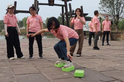 上午9時(shí),團(tuán)建隊(duì)伍在荊州公司廠區(qū)門口集合,統(tǒng)一乘車奔赴此次的活動(dòng)目的地—莫愁村。一路上,大家歡聲笑語(yǔ),熱情高漲,興致勃勃。經(jīng)過(guò)兩個(gè)半小時(shí)的車程,團(tuán)建隊(duì)伍抵達(dá)了本次團(tuán)建活動(dòng)的第一站——莫愁村景區(qū)。下午14時(shí),我們整裝待發(fā),前往本次熔煉團(tuán)隊(duì)的場(chǎng)所-莫愁屯廣場(chǎng)。古老神圣的場(chǎng)地與熱血奮發(fā)的團(tuán)隊(duì)完美適配。工作小組緊鑼密鼓布置場(chǎng)地,講述團(tuán)建項(xiàng)目規(guī)則和要求,全情投入的熔煉之賽在“抱團(tuán)取暖”分組游戲中開拔啟航。 在荊州公司總經(jīng)理鄭彬的指導(dǎo)下,我們先后開展了無(wú)敵風(fēng)火輪、珠行萬(wàn)里、摸石過(guò)河三項(xiàng)團(tuán)體競(jìng)賽項(xiàng)目。無(wú)敵風(fēng)火輪培養(yǎng)了隊(duì)員團(tuán)結(jié)一致,密切合作,克服困難的團(tuán)隊(duì)精神,加強(qiáng)了服從指揮、一絲不茍的工作態(tài)度。珠行萬(wàn)里中隊(duì)員們能強(qiáng)烈感受團(tuán)隊(duì)間有效的緊密配合、有序銜接,大家自發(fā)為共同的目的以及團(tuán)隊(duì)的責(zé)任感做好每一個(gè)環(huán)節(jié)。最具挑戰(zhàn)的當(dāng)屬摸石過(guò)河,它是耐心和速度的較量,既提高了團(tuán)隊(duì)協(xié)作能力和戰(zhàn)略戰(zhàn)術(shù),又訓(xùn)練了團(tuán)隊(duì)內(nèi)部的協(xié)調(diào)能力,增強(qiáng)了隊(duì)員間的相互信任和理解。