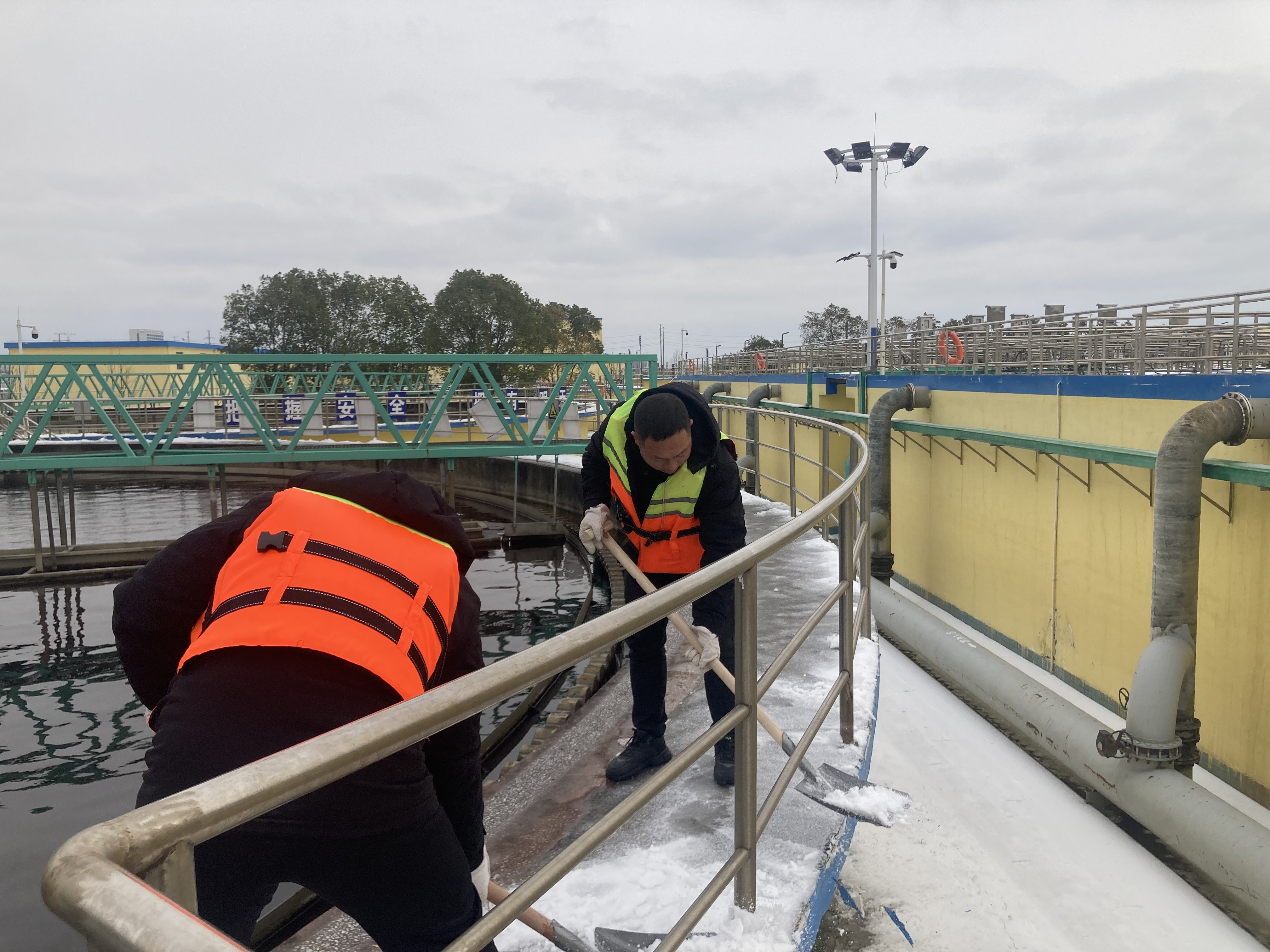 2月22日荊州市迎來了新一輪寒潮大風(fēng)、低溫雨雪冰凍天氣的考驗,聯(lián)合水務(wù)荊州公司整個廠區(qū)被包圍冰雪之中,全體職工在聯(lián)合水務(wù)荊州公司總經(jīng)理鄭彬的帶領(lǐng)下,扛起鍬鎬、拿著掃帚,分工明確,你鏟我掃,個個奮力爭先,無畏嚴(yán)寒苦累,全力清理道路積雪、鏟除水池及扶梯上的冰凌,迅速恢復(fù)廠區(qū)行進順暢,一片秩序井然之象。