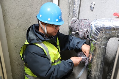 他是維修員張棟棟。背著沉重的工具包,他穿梭在大街小巷,寒風凜冽,腳步不歇,在狹小的管道井、在沒有電梯的樓梯間……他細致地檢查管道,包裹保溫材料,用腳步丈量責任,以實干詮釋擔當。“每一層的水表箱,我們都要對保溫棉、表套等進行檢查,并做好記錄。遇到雨雪冰凍天氣,我們還會增派人員,加大巡檢力度寒潮來臨前,公司全體維修員不畏嚴寒,爭分奪秒,對小區管道井、水表箱進行全面檢查和維護,每一處細節都不放過,一旦出現供水故障,他們會迅速組織人員搶修,以最快速度恢復供水。