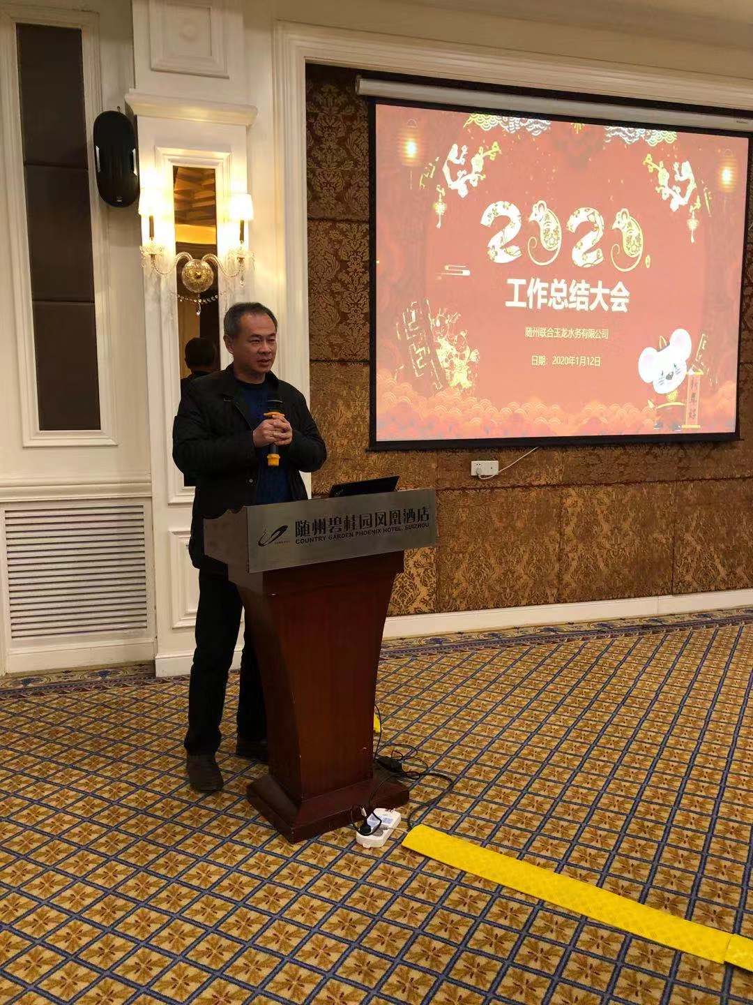 金豬搖尾辭舊歲,玉鼠探頭迎新春。 在年終歲首、辭舊迎新之際,曾隨大地剛剛經(jīng)歷初雪的洗禮。雪后初霽、冬寒刺骨,戶外三九時(shí)節(jié)、北風(fēng)凜冽,但隨州鳳凰酒店日內(nèi)瓦廳室內(nèi)華燈璀璨、流光溢彩、熠熠生輝、春意融融!2020年1月12日,隨州聯(lián)合玉龍水務(wù)有限公司2019年度年終總結(jié)大會(huì)在這里隆重舉行。 總結(jié)過去,謀劃未來。 聯(lián)合水務(wù)集團(tuán)高級(jí)副總裁劉猛、人力資源行政部總經(jīng)理?xiàng)铥愊肌⒉少徔偙O(jiān)曹雷千里迢迢、不辭辛苦出席會(huì)議。在隨州公司總經(jīng)理鄭總熱情洋溢的開幕詞中總結(jié)大會(huì)正式開始。 會(huì)議首先從觀看隨州公司宣傳片中拉開帷幕。看著以往朝夕相處、無比熟悉的公司場景驟然以視頻的形式出現(xiàn)在大家眼前,大家既親切又自豪!更有一種“擼起袖子加油干”立即奔赴崗位、再接再厲為公司再做貢獻(xiàn)的豪情與沖動(dòng)。 接著,總經(jīng)理助理朱總從生產(chǎn)技術(shù)的角度在大會(huì)發(fā)言,緊扣“四內(nèi)憂、五外患、六解決”的重點(diǎn)闡述了生產(chǎn)模塊過去一年的工作情況及工作計(jì)劃。 隨后,鄭總就隨州公司過去一年的工作進(jìn)行發(fā)言。突出已有成績,面對(duì)的挑戰(zhàn),也毫不避諱存在的問題,更是列出了2020年的5個(gè)工作重點(diǎn)。希望全員力出一孔,利出一孔,讓隨州公司2020年開創(chuàng)一個(gè)新局面。 之后,劉總做總結(jié)性發(fā)言。劉總在上臺(tái)第一時(shí)間就做出俏皮的手勢擺出一個(gè)很酷的pose主動(dòng)要求攝影留念,立刻活躍了整個(gè)會(huì)場的氣氛。劉總現(xiàn)場講了“三新兩好一要求”。