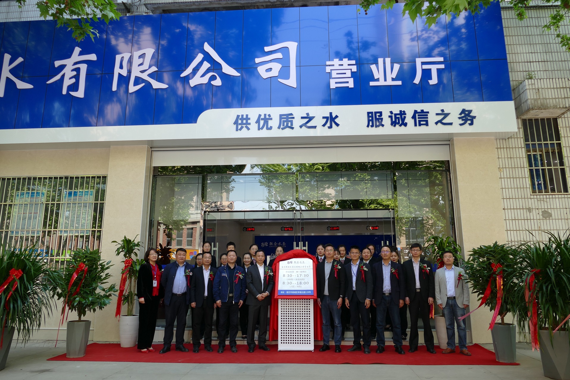 4月29日,風清日朗,喜氣洋洋,上午9:18分,宿遷銀控自來水有限公司營業(yè)廳重裝開業(yè)揭牌儀式在一水廠隆重舉行,公司高管及客戶服務部全體人員參加了揭牌儀式。總經(jīng)理曾真與運營模塊副總經(jīng)理尹邦交共同為新營業(yè)廳揭牌,標志著煥然一新的新營業(yè)廳正式投入使用。