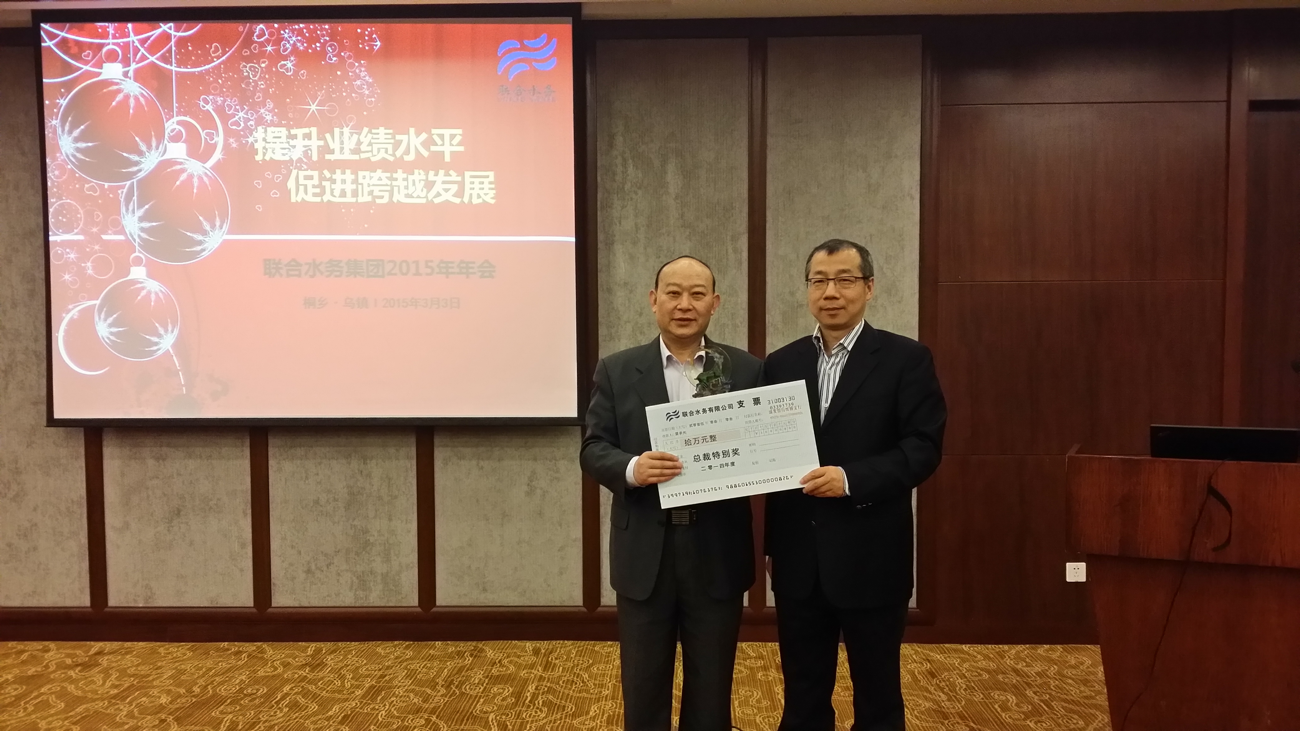 『夏總榮獲“總裁特別獎(jiǎng)”』 上善若水 源遠(yuǎn)流長 壯士暮年而基業(yè)長青。作為聯(lián)合水務(wù)項(xiàng)目團(tuán)隊(duì)“元老”之一,夏承光將前大半生獻(xiàn)給了水務(wù)事業(yè),獻(xiàn)給了聯(lián)合水務(wù)的成長壯大。他說,水乃生命之源,滋養(yǎng)萬物而生生不息,與水結(jié)緣,與聯(lián)合水務(wù)結(jié)緣,踐行聯(lián)合水務(wù)“供優(yōu)質(zhì)之水、服誠信之務(wù)”的經(jīng)營宗旨,我們付出,我們努力,我們奮斗,城市可以發(fā)展,社會(huì)可以進(jìn)步,老百姓生活水平可以提高,我們雖苦猶榮,是值得的。長風(fēng)破浪會(huì)有時(shí),人間正道是滄桑,使命光榮,任重道遠(yuǎn)。在夏承光老一輩聯(lián)合水務(wù)人的帶領(lǐng)與感召下,一代代聯(lián)合水務(wù)人將不忘初心,接續(xù)奮斗,開新天,辟高地,再創(chuàng)未來。