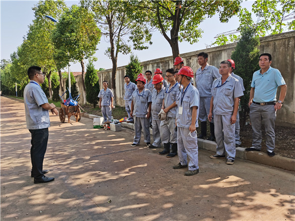 安全生產(chǎn)是企業(yè)生存發(fā)展之根本。 五黃六月,烈日炎炎、暑氣逼人,有毒有害氣體極易積聚,自6月份以來,國內(nèi)多家化工企業(yè)以及與化工有關(guān)的污水處理企業(yè)等多次發(fā)生有限空間作業(yè)中毒窒息事故,有限空間作業(yè)安全事故已成為化工類企業(yè)的重大安全隱患。作為荊州經(jīng)濟技術(shù)開發(fā)區(qū)唯一的工業(yè)污水處理專營企業(yè),為有效預(yù)防和避免公司生產(chǎn)經(jīng)營過程中各類有限空間作業(yè)事故的發(fā)生,保證安全穩(wěn)定的生產(chǎn),建立緊急情況下迅速、科學(xué)、高效地組織事故搶險、救援和應(yīng)急機制,減少事故的影響和損失,杜絕類似安全事故的發(fā)生,8月27日,聯(lián)合水務(wù)荊州項目公司組織開展了有限空間作業(yè)事故應(yīng)急演練。公司總經(jīng)理許應(yīng)濤、人事行政副總經(jīng)理劉斌等領(lǐng)導(dǎo)全程參與演練,充分顯示了公司對安生生產(chǎn)的高度重視。 演練前,工藝技術(shù)經(jīng)理王臣帶領(lǐng)生產(chǎn)部門全體員工進(jìn)行了有限空間作業(yè)安全培訓(xùn),對事前制定的演練預(yù)案進(jìn)行了詳解及分組討論,并針對7月份進(jìn)行的一次預(yù)演訓(xùn)練中出現(xiàn)的問題進(jìn)行了總結(jié)和方案的改進(jìn),應(yīng)急小組再次認(rèn)真確定演練方案后,仔細(xì)研究各個應(yīng)急處理流程,分配模擬任務(wù)及安排崗位角色,讓全體參與人員熟知演練過程并牢記于心。