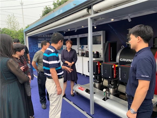 圖1:大篷車布場 設備銷售部是我公司經(jīng)營對外業(yè)務的部門,主要負責蘇北地區(qū)格蘭富供水設備的銷售以及標準化泵房的量身定制。經(jīng)過整個團隊的不懈努力,目前,在宿遷周邊地區(qū)都陸續(xù)有了以格蘭富成套設備為核心的標準化泵房形象工程,得到了客戶們的認可和好評。 公司以領先的技術(shù)水平,從前期勘測、設計、設備選型,到中期泵房裝修、管路安裝以及后期完整的售后服務體系,為我們的客戶提供完整的方案和技術(shù)支持,讓客戶們省心、放心。 這次大篷車路演展示活動大大增進了我們與客戶的合作關(guān)系,促進了水司單位之間的兄弟情誼。一方面,我們通過詳細講解讓客戶詳細深入地了解格蘭富產(chǎn)品的核心優(yōu)勢;另一方面,帶著客戶在大篷車里零距離接觸設備,你問我答地解決了客戶在供水領域長久以來的疑惑和擔憂,真心實意地站在客戶的立場為客戶排憂解難,真正做到了讓客戶信服和認可。