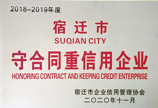 2020年歲末,宿遷市企業(yè)信用管理協(xié)會(huì)公示了《2018-2019年度宿遷市市級(jí)“守合同重信用”企業(yè)公示名單》,宿遷聯(lián)合市政工程有限公司榮膺在列,經(jīng)過公示,最終2021年1月下旬,證書和牌匾正式下發(fā)到獲獎(jiǎng)企業(yè)。能獲此榮譽(yù)稱號(hào)是對(duì)宿遷聯(lián)合市政多來以來堅(jiān)持守合同重信用工作的認(rèn)可與肯定。
