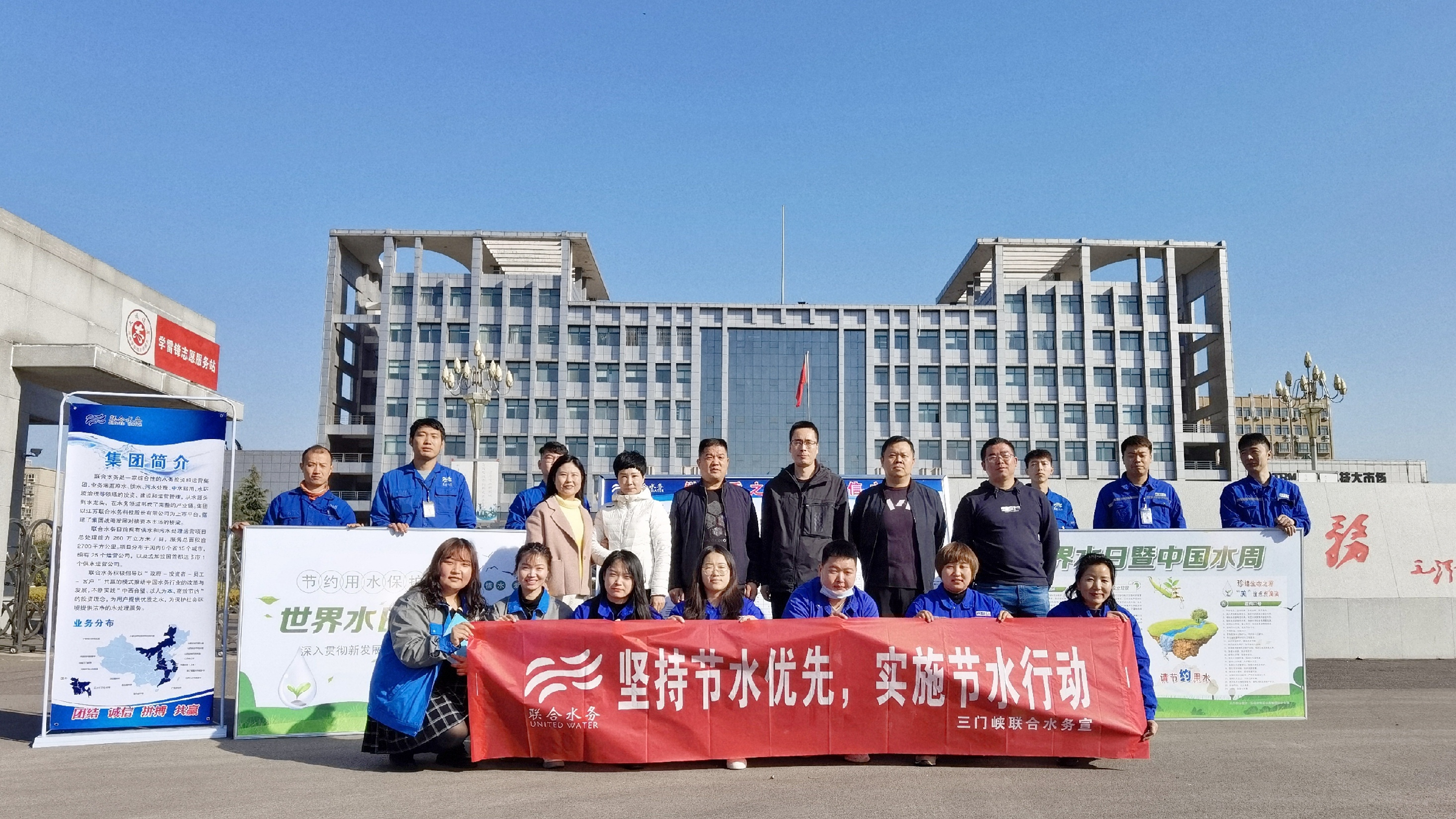 圖:活動參與人員合影 為做好此次宣傳,三門峽公司管網(wǎng)客服部、水檢中心等多部門聯(lián)合,共組成2個宣傳小組。一組由客服主管楊艷婷牽頭,帶領成員在示范區(qū)政府門口宣傳,為過往行人分發(fā)彩頁,分享節(jié)水、用水知識,并邀請行人在現(xiàn)場進行“節(jié)水中國,你我同行”簽名活動,增強公民“珍惜水、愛護水”的意識,呼吁更多的人為推動水資源保護盡一份綿薄之力。