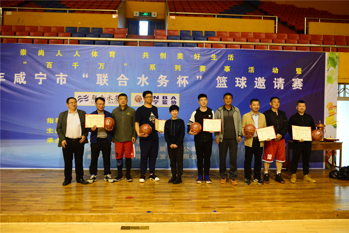 活動(dòng)合影 本屆邀請(qǐng)賽是為了活躍員工業(yè)余文化生活,增強(qiáng)團(tuán)隊(duì)凝聚力和戰(zhàn)斗力,以球會(huì)友、廣交朋友,提高聯(lián)合水務(wù)品牌效應(yīng),由咸寧市體育事業(yè)發(fā)展中心指導(dǎo),咸寧聯(lián)合水務(wù)有限公司主辦,咸寧市籃球協(xié)會(huì)、湖北和沃運(yùn)動(dòng)體育發(fā)展有限公司、咸寧市盛世驕陽(yáng)文化發(fā)展有限公司承辦的,市委市政府兩辦、市委組織部、咸安區(qū)、省王英水庫(kù)管理局、市廣電播電視臺(tái)、市住建局、市委市政府兩辦、咸安區(qū)政府辦、市稅務(wù)局、市生態(tài)環(huán)境局、市市場(chǎng)監(jiān)督局、市紀(jì)檢委、區(qū)綠投和聯(lián)合水務(wù)咸寧區(qū)域等12支籃球隊(duì)參加此次邀請(qǐng)賽。
