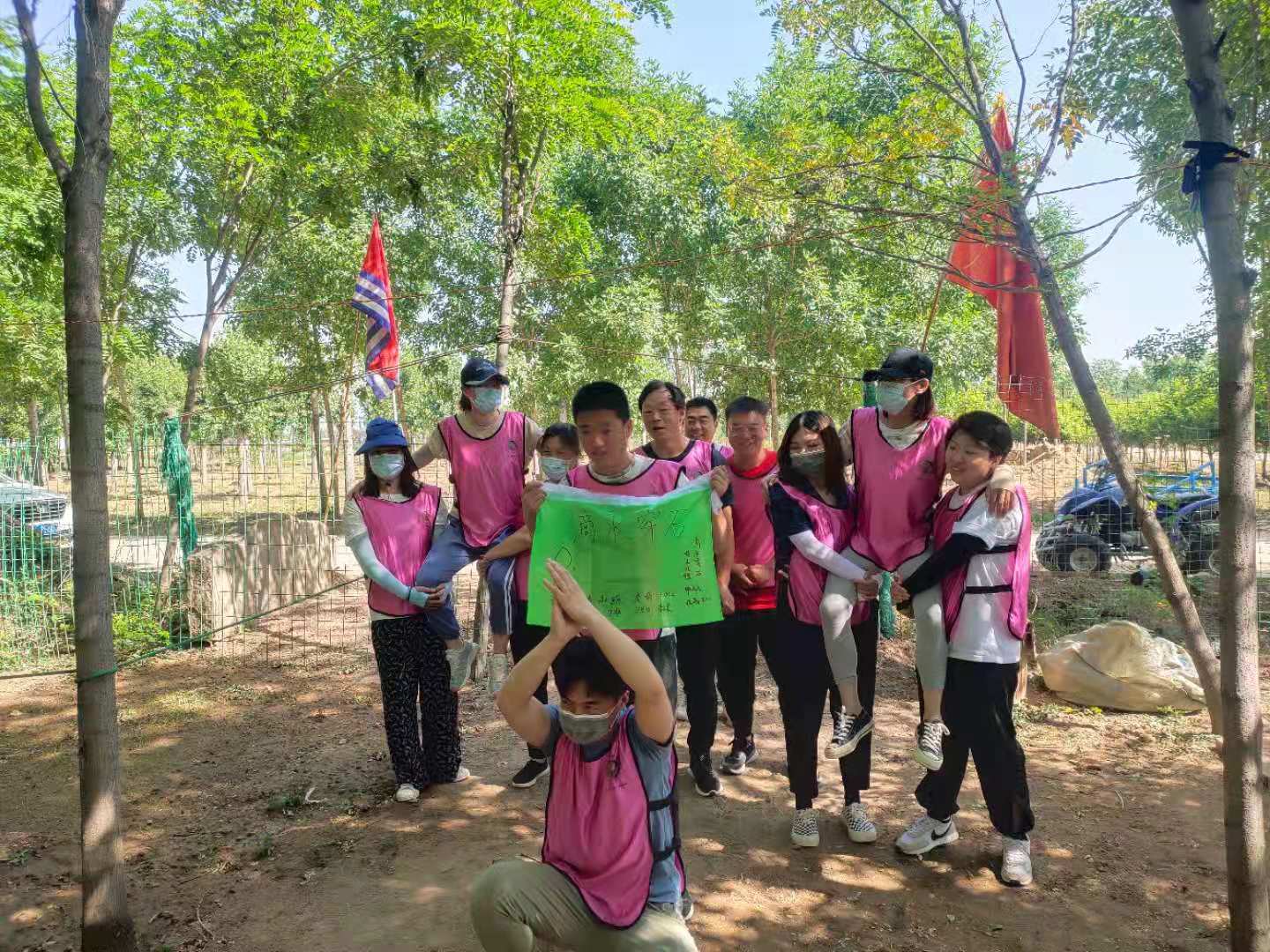 圖:團(tuán)建合影 早上8:30,全員集合完畢,整裝到達(dá)襄汾沁馨園拓展培訓(xùn)基地。 教練按照公司完成小組的分配,換隊服,“戰(zhàn)隊”雛形成立。經(jīng)過破冰項目“桃花朵朵開”,打破堅冰,開始全天活動。 正式訓(xùn)練前,由隊員選出隊長,在選出隊長的引領(lǐng)下一起商討出各自隊名,隊徽和隊歌。