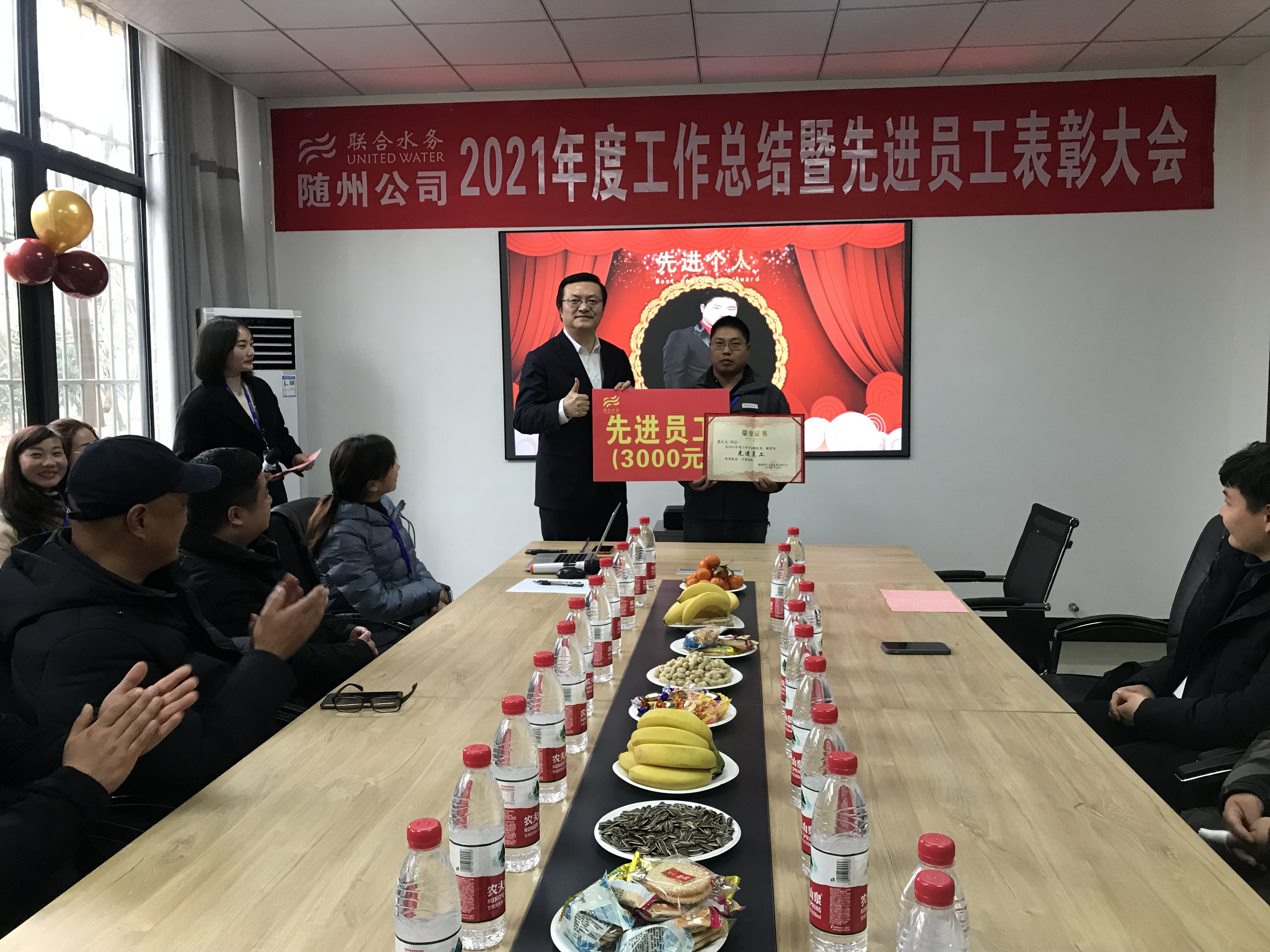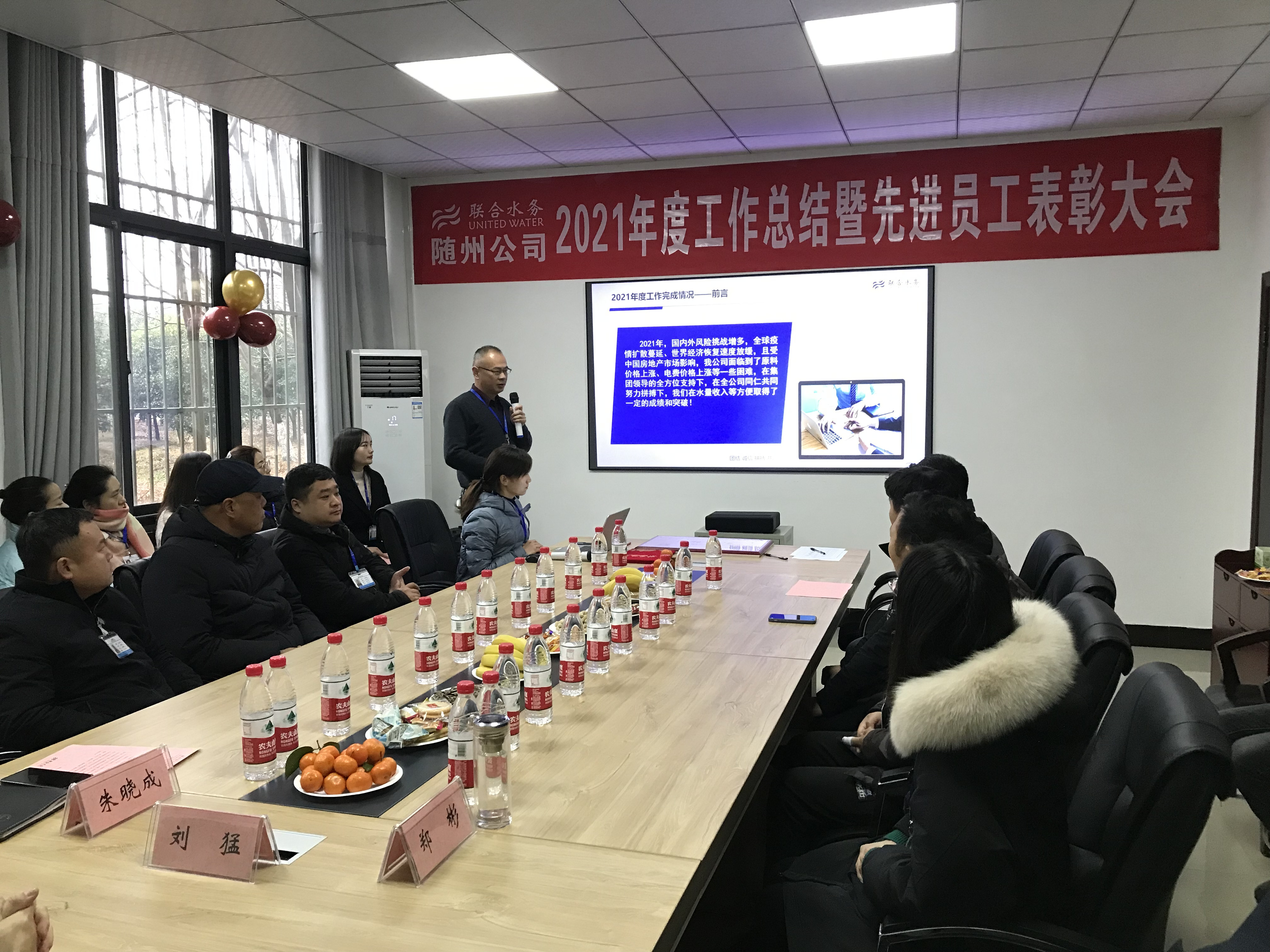 1月22日下午,隨州聯(lián)合玉龍水務有限公司召開了2021年度工作總結(jié)暨先進員工表彰大會,聯(lián)合水務常務副總裁劉猛出席會議,隨州公司總經(jīng)理鄭彬、總經(jīng)理助理朱曉成及全體職工參加會議。